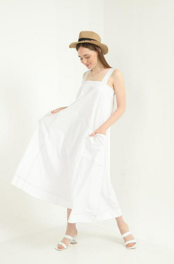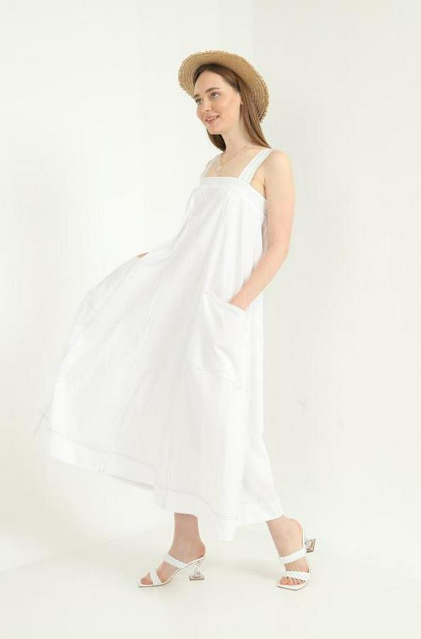 AnasayfaTüm ÜrünlerElbiseBeyaz Askılı Cepli Elbise