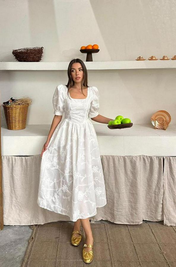 AnasayfaTüm ÜrünlerElbiseBeyaz Balon Kollu Brode Elbise
