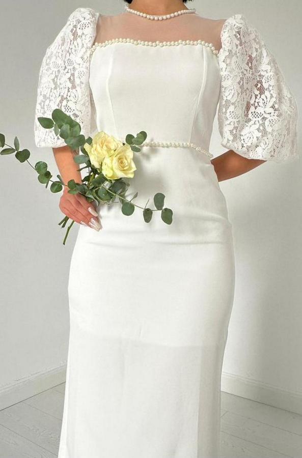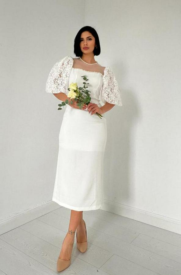 AnasayfaTüm ÜrünlerElbiseBeyaz Incili Tül Detay Elbise