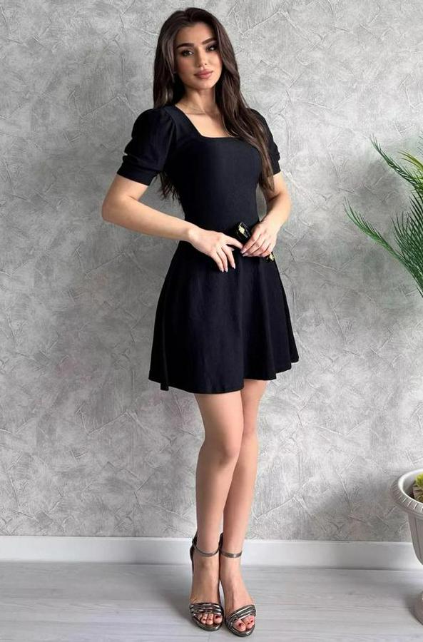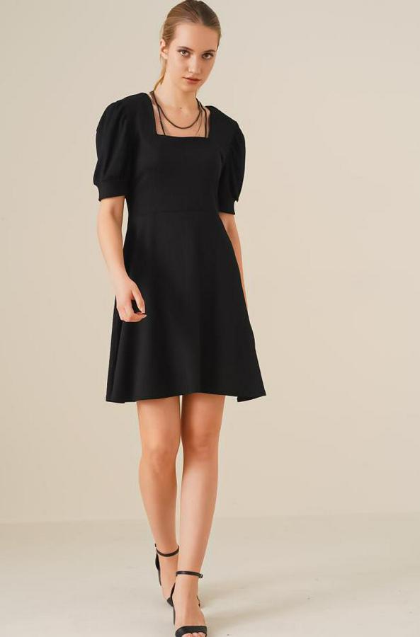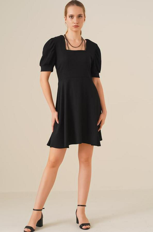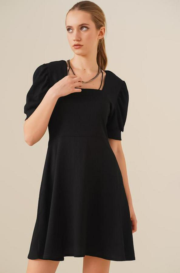 Bigdart 2339 Kare Yaka Örme Elbise - Siyah