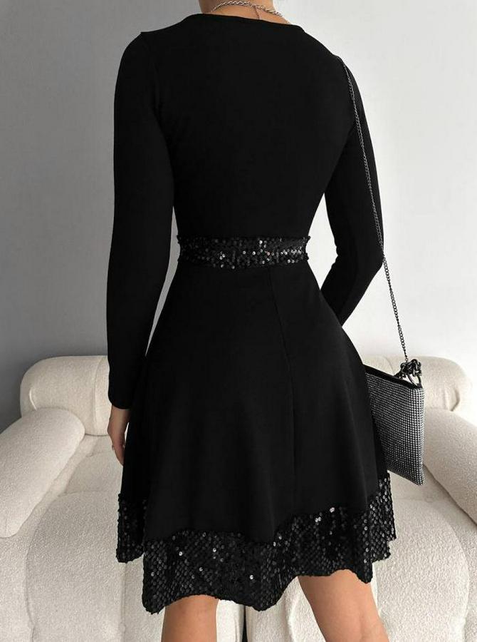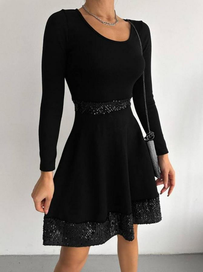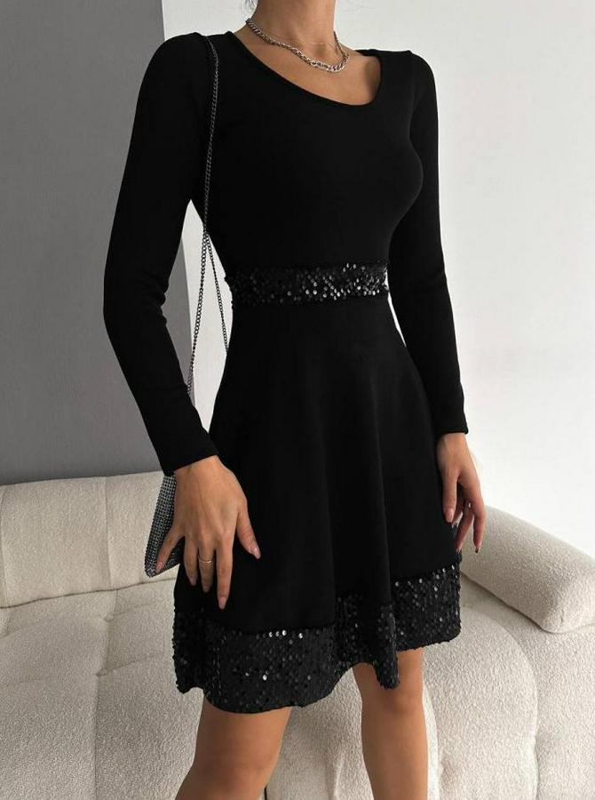 AnasayfaTüm ÜrünlerElbiseBisiklet Yaka Beli Ve Eteği Pul Payet Detay Fırsat Ürün Diz Üstü Elbise