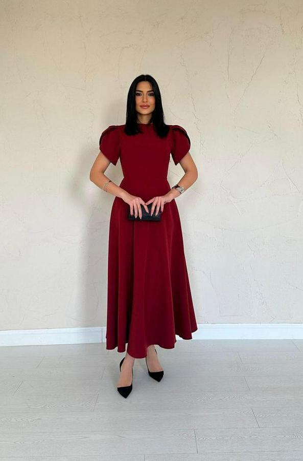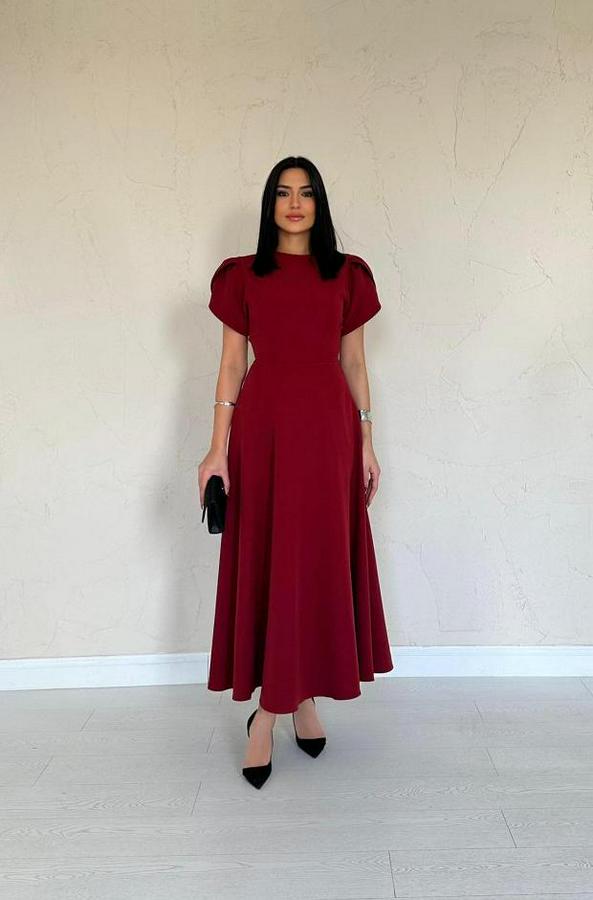 AnasayfaTüm ÜrünlerElbiseBordo Arkası Fiyonk Garnili Britli Elbise