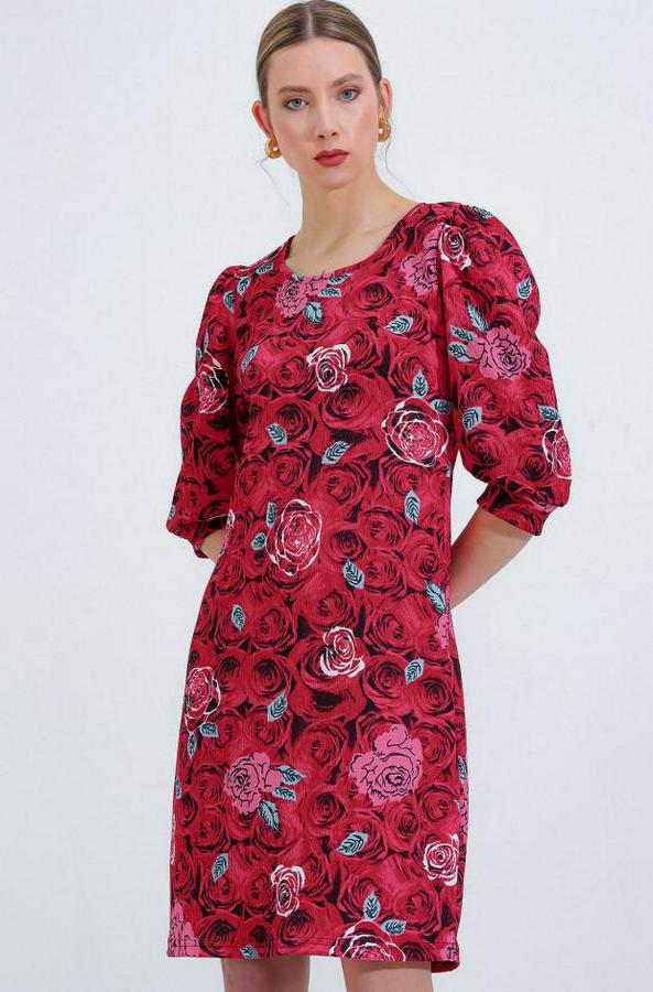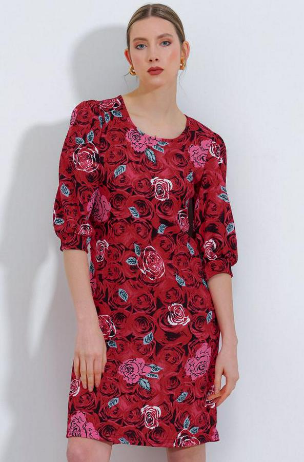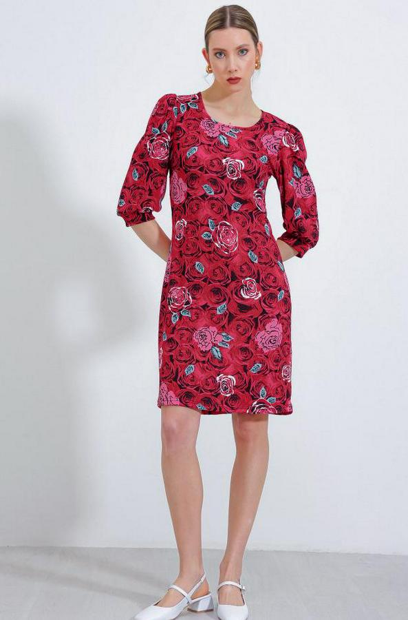 AnasayfaTüm ÜrünlerElbiseBordo Gül Desenli Midi Elbise 2477