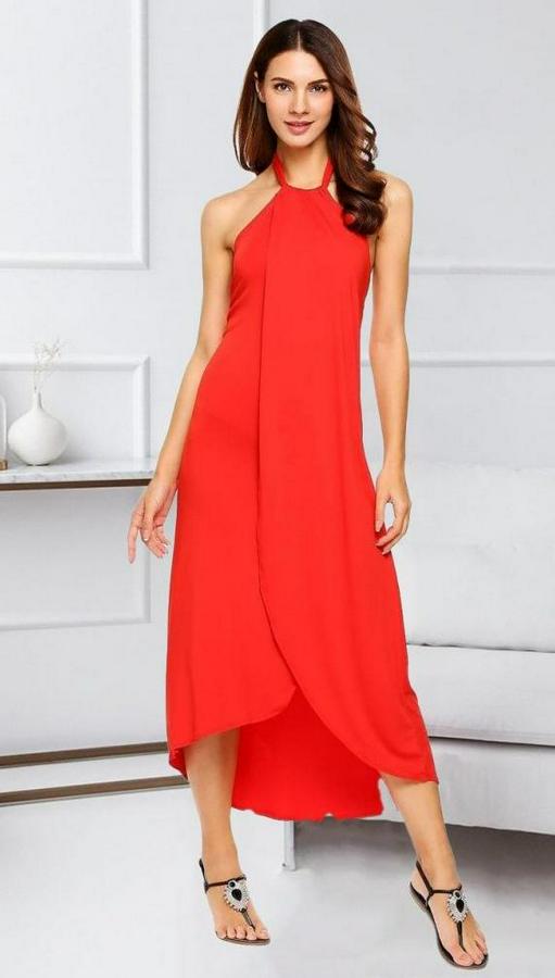 Boyun Askılı Eteği Kruvaze Kesim Viskon Kumaş Elbise