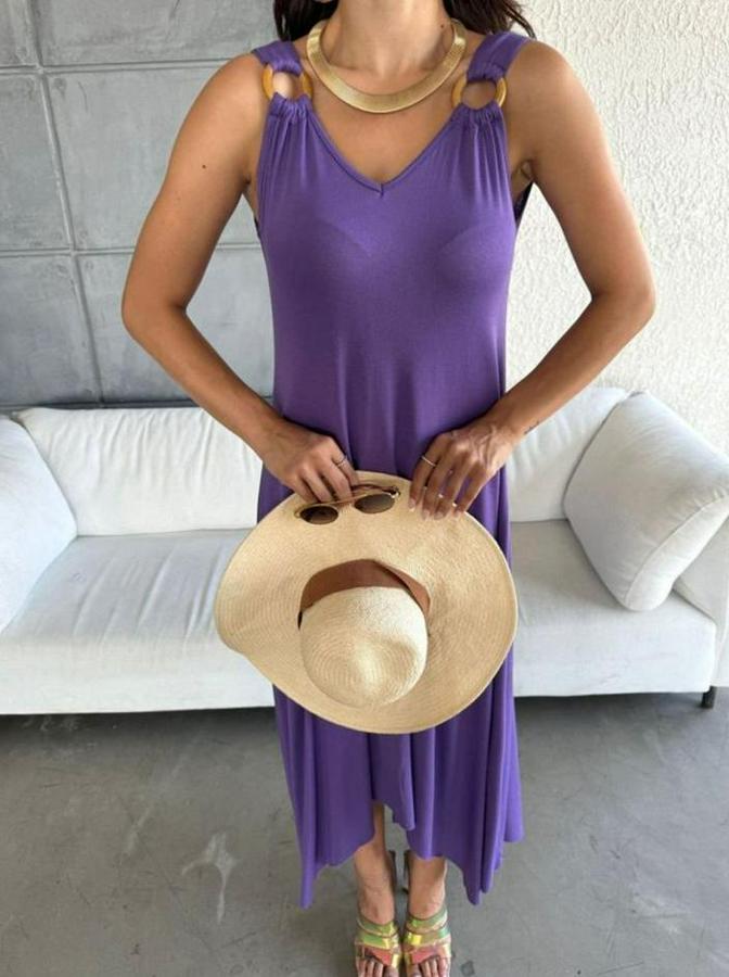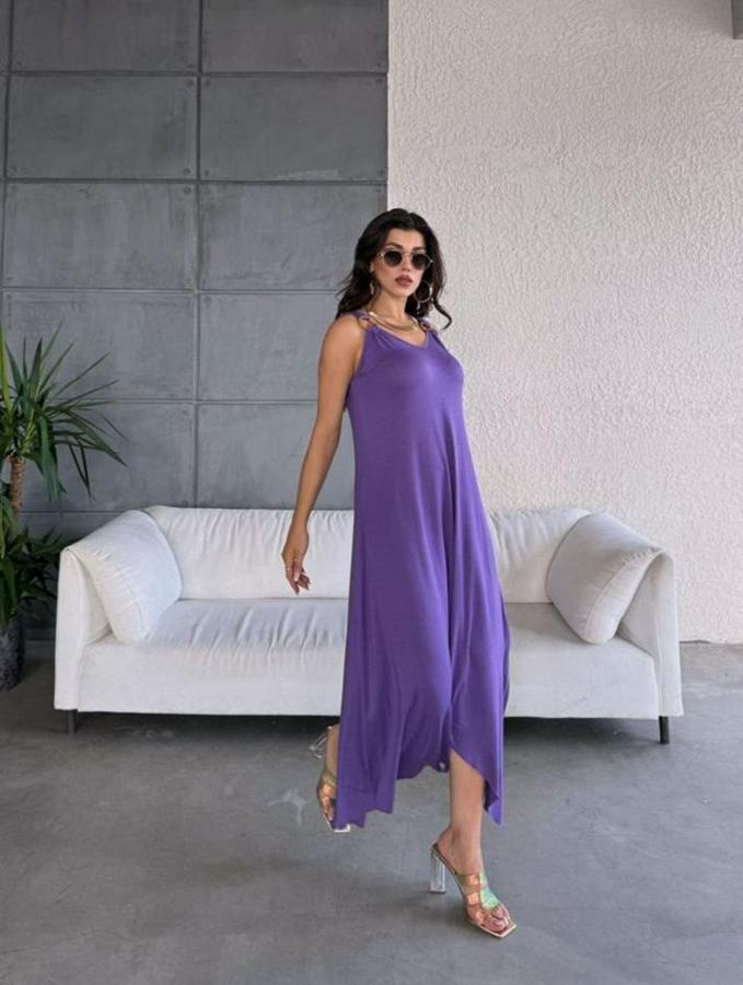 AnasayfaTüm ÜrünlerElbiseÇan Dokuma Kumaş V Yaka Asimetrik Kesim Elbise