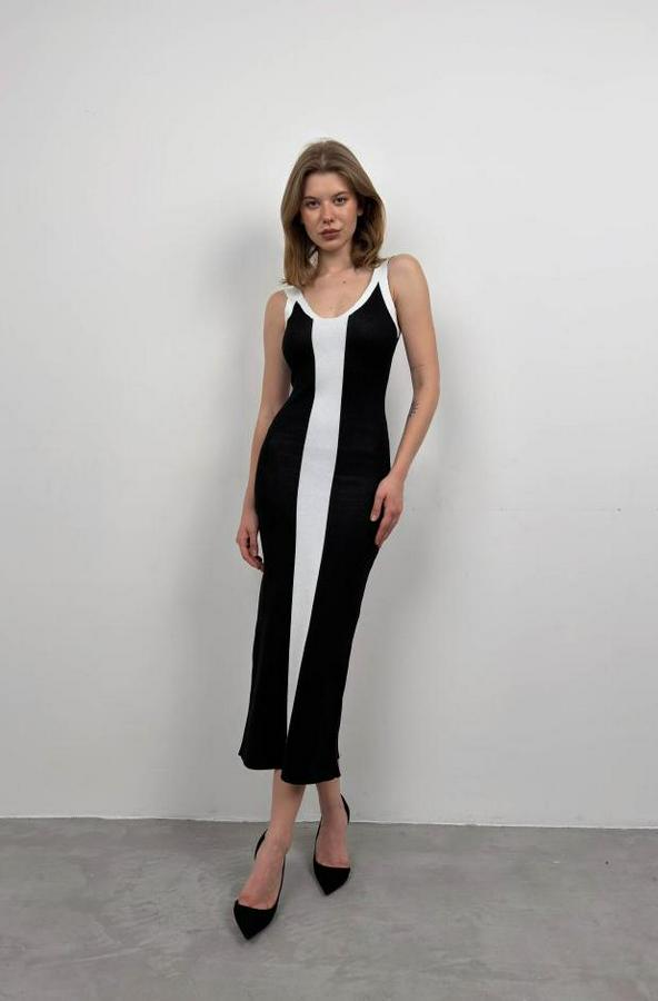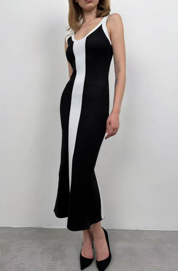 AnasayfaTüm ÜrünlerElbiseÇift Renk Yırtmaç Detay Elbise