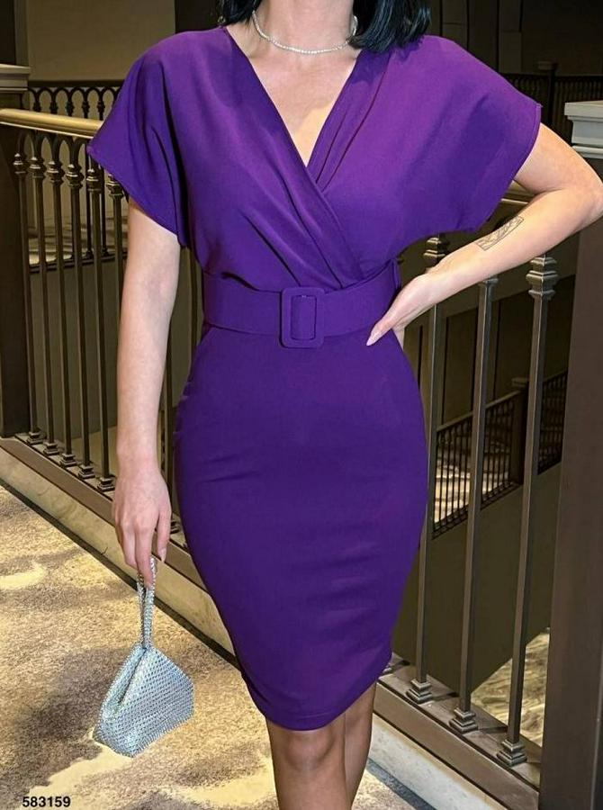 Kadın Dalgıç Krep V Yaka Ve Sırt Dekolte Detaylı Elbise