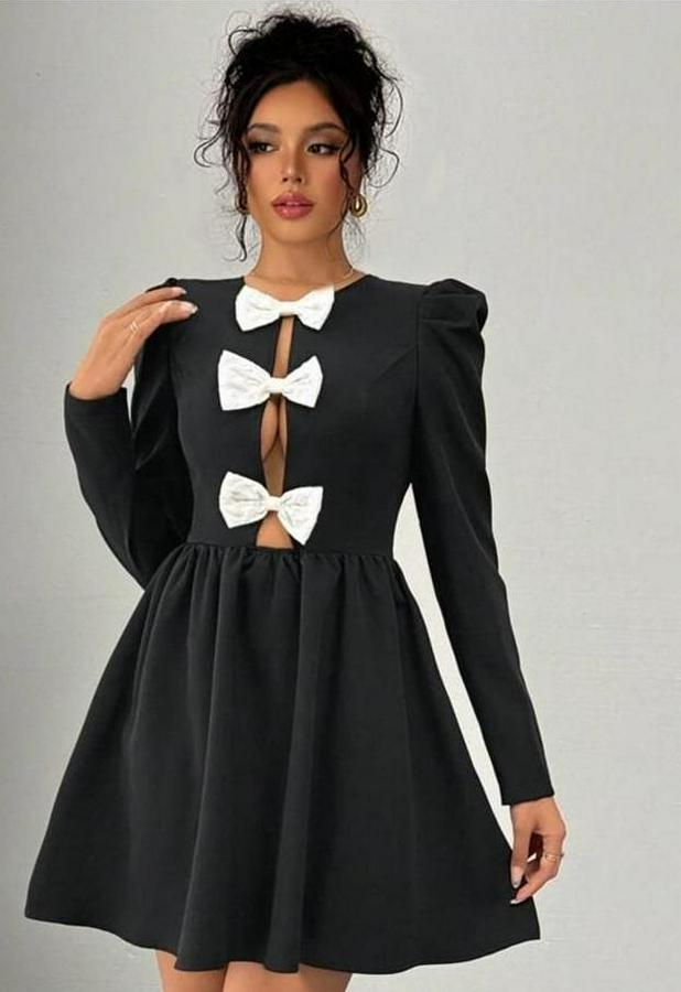 AnasayfaTüm ÜrünlerElbiseDalgıç Kumaş Fiyonk Detaylı Uzun Kollu Mini Boy Elbise