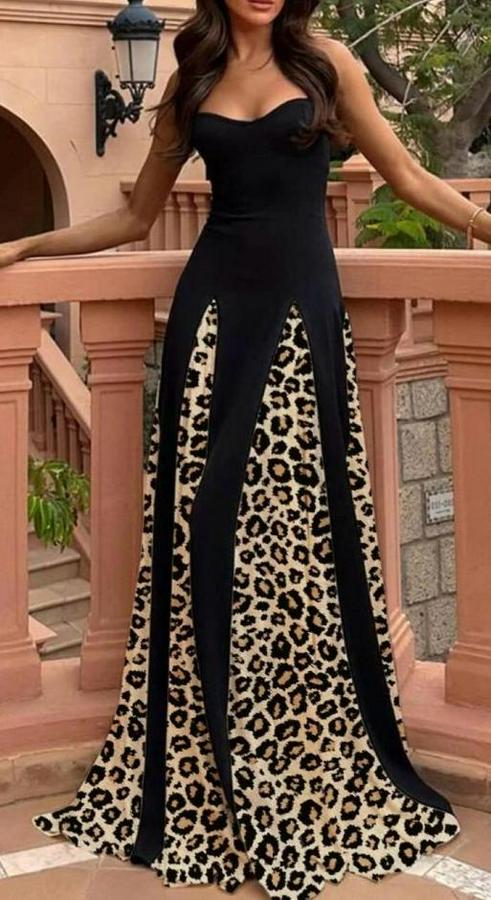 AnasayfaTüm ÜrünlerElbiseDalgıç Kumaş Leopar Desenli Kloş Elbise