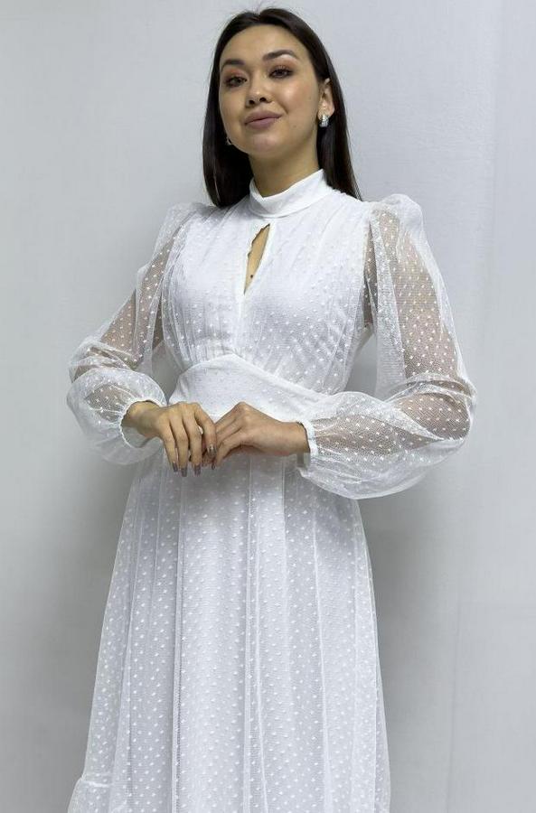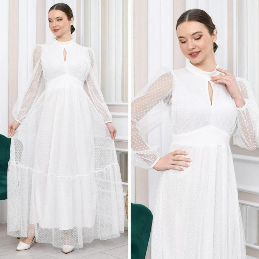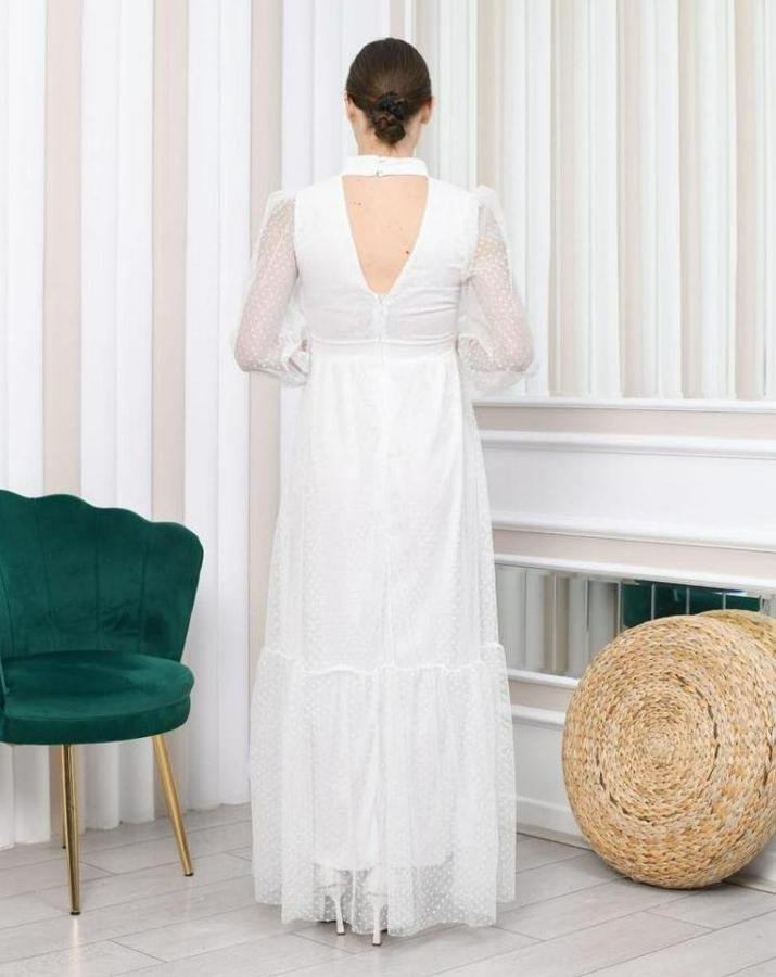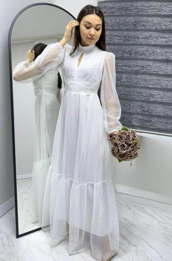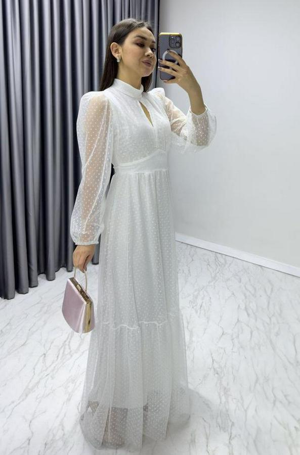 Damla Yaka Sırt Dekolteli Astarlı Tül Elbise