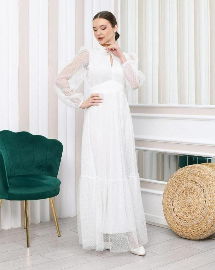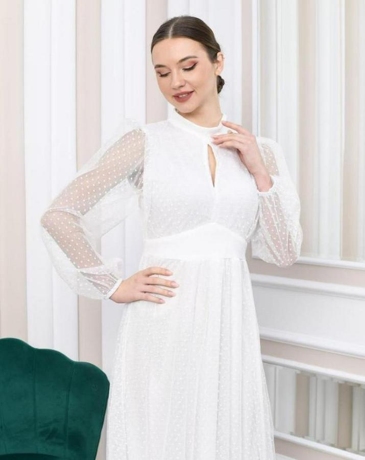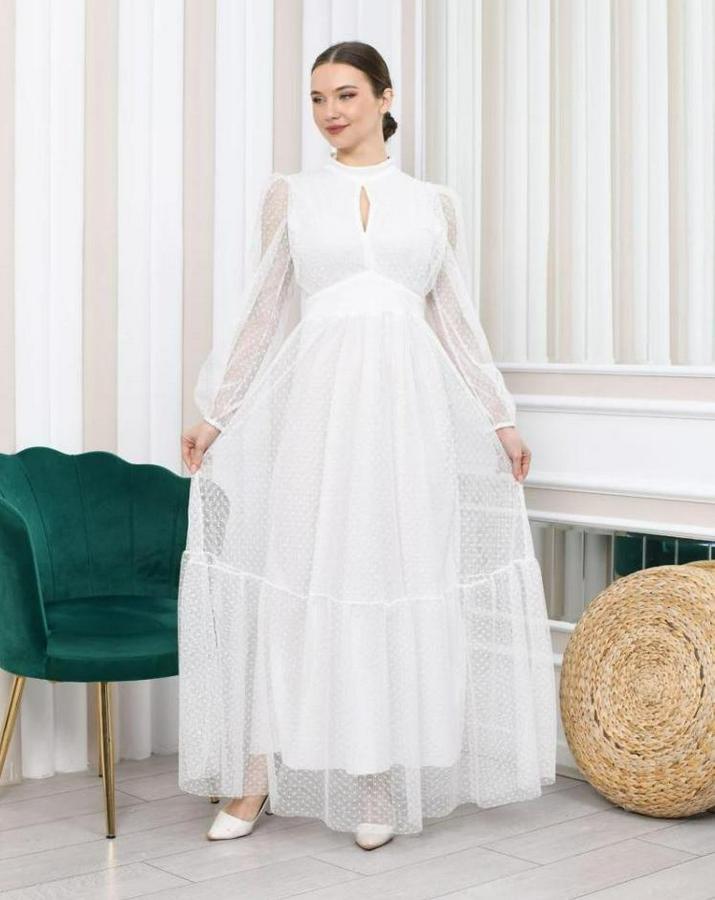 AnasayfaTüm ÜrünlerElbiseDamla Yaka Sırt Dekolteli Astarlı Tül Elbise