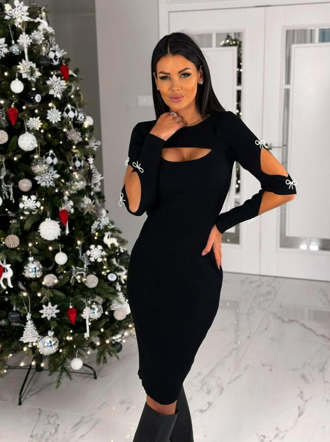 AnasayfaTüm ÜrünlerElbiseDekolte Detaylı Scuba Dalgıç Kumaş Taş Aksesuarli Elbise