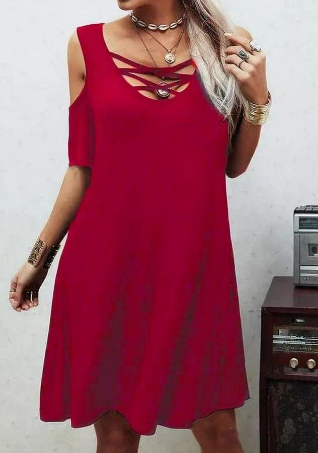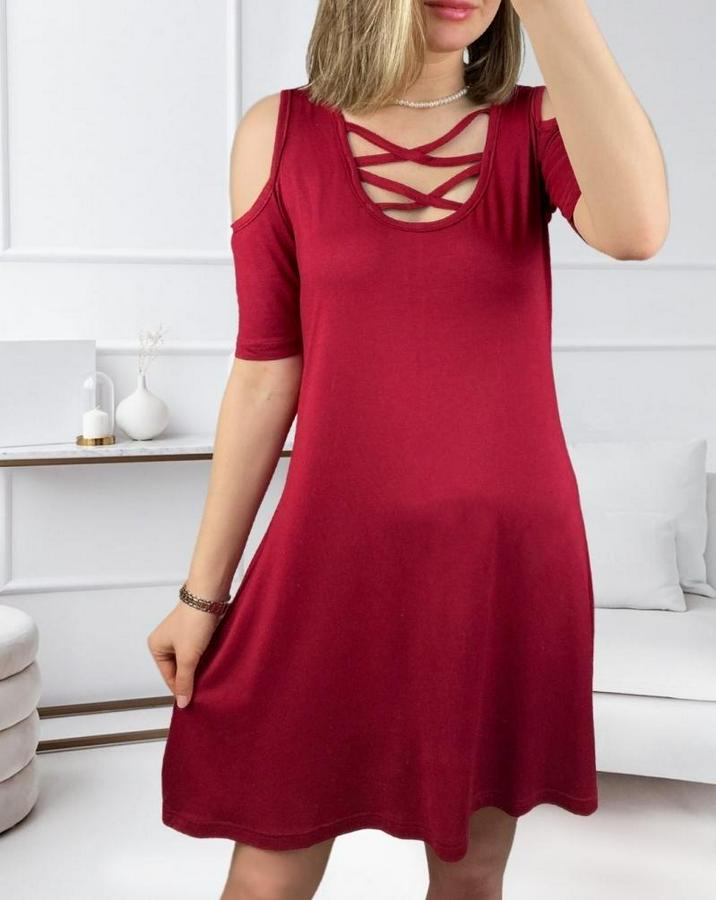 Dekolteli Bağcık Detay Viskon Kumaş Elbise