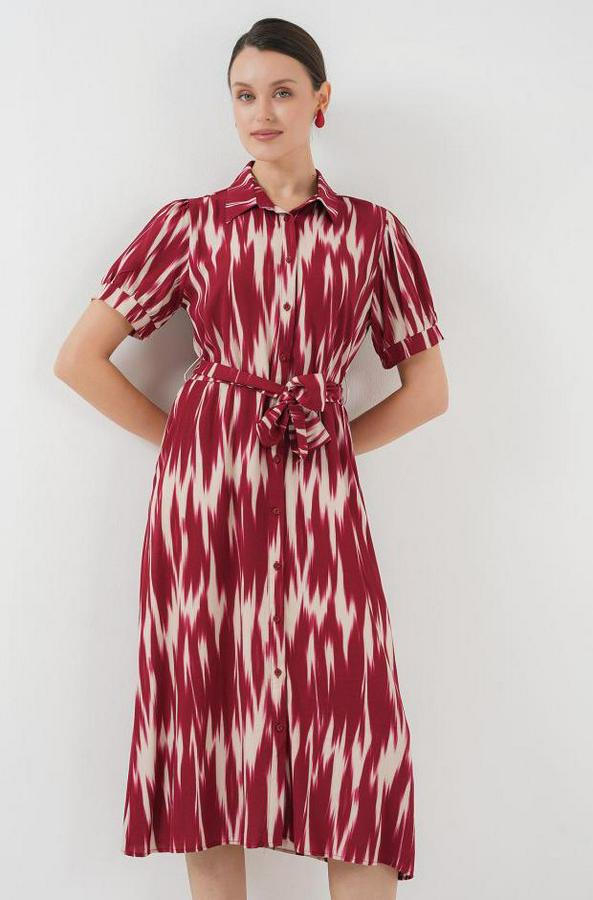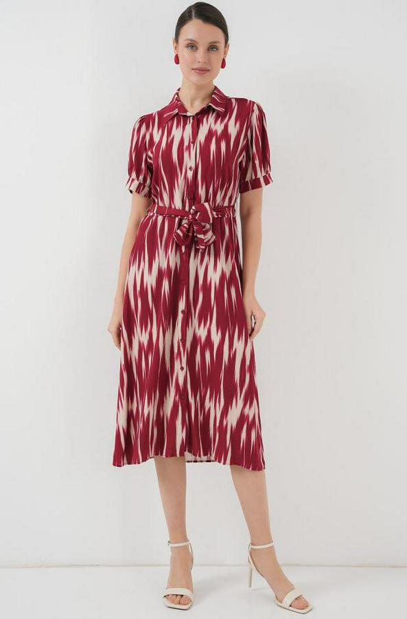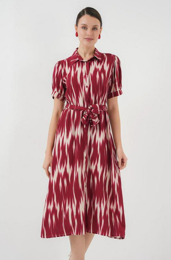 Desenli Kısa Kol Elbise 2532 - Bordo
