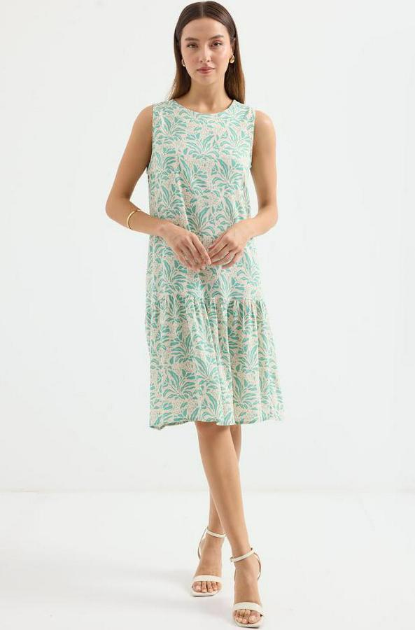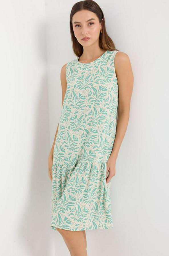 AnasayfaTüm ÜrünlerElbiseDesenli Viskon Mint Krem Elbise