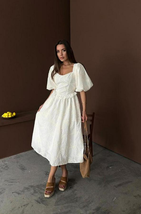 AnasayfaTüm ÜrünlerElbiseEkru Balon Kollu Dantelli Brode Elbise
