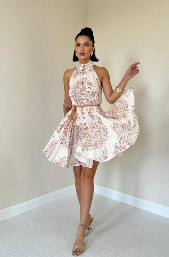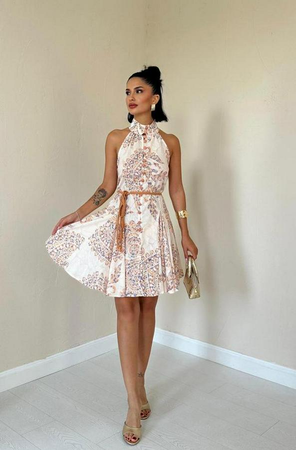 AnasayfaTüm ÜrünlerElbiseEkru Halter Yaka Elbise