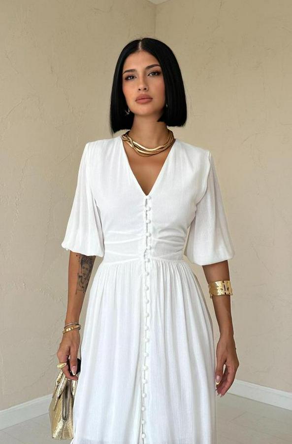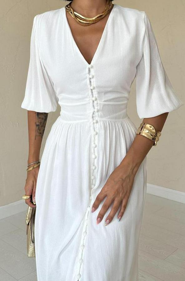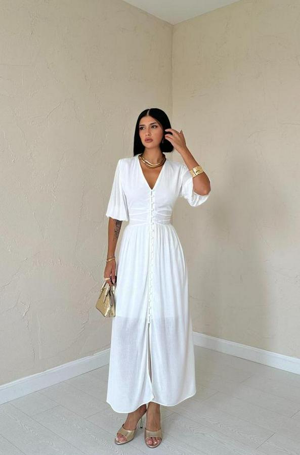 AnasayfaTüm ÜrünlerElbiseEkru Önü Düğmeli Elbise