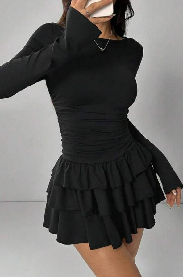 AnasayfaTüm ÜrünlerElbiseEteği Kat Kat Volanlı Mini Elbise