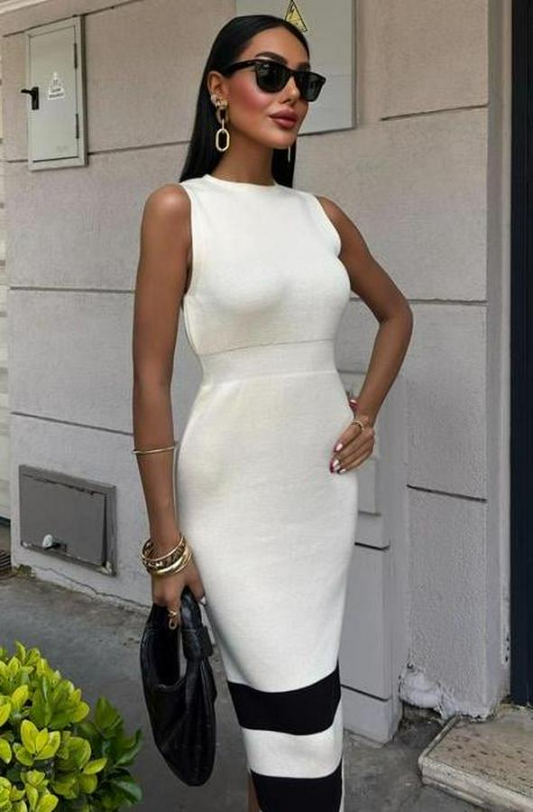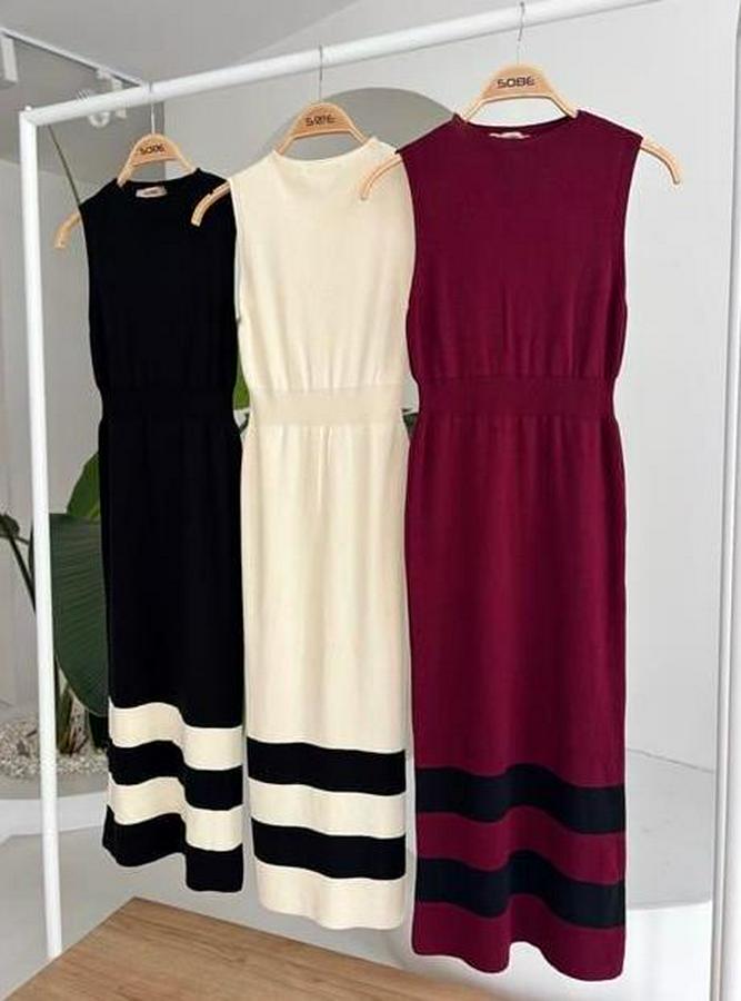 Etek Ucu Şerit Detaylı Triko Elbise 2831