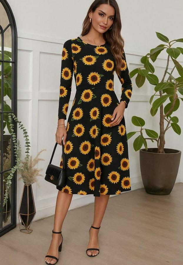 AnasayfaTüm ÜrünlerElbiseFakir Kol Bisiklet Yaka Midi Mikro Elbise