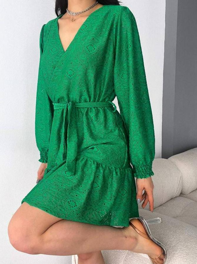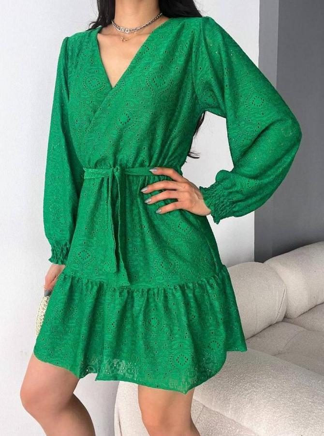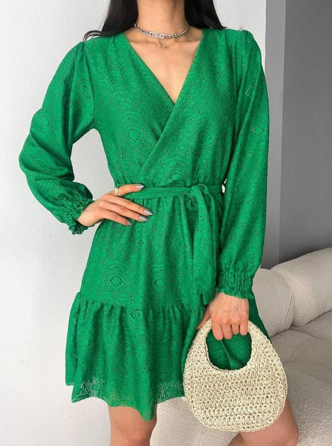 Fırsat Ürünü Kruvaze Yaka Güpürlü Mini Elbise