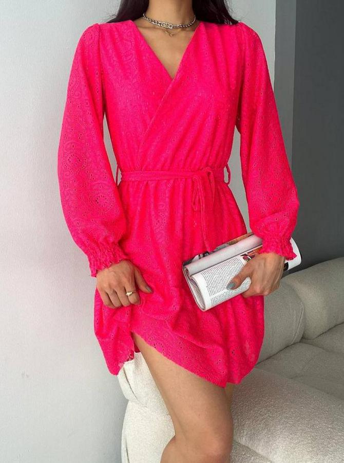 AnasayfaTüm ÜrünlerElbiseFırsat Ürünü Kruvaze Yaka Güpürlü Mini Elbise