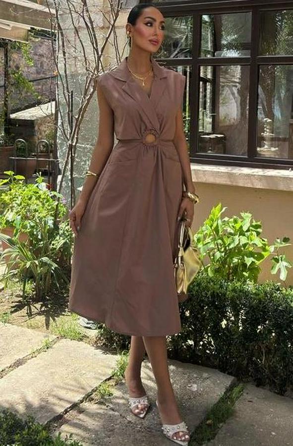AnasayfaTüm ÜrünlerElbiseGöbeği Halka Detaylı Midi Boy Elbise 2896