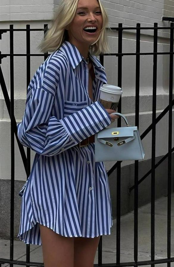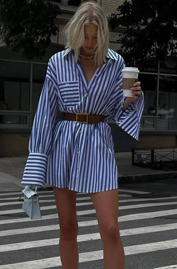 AnasayfaTüm ÜrünlerElbiseGömlek -Elbise Çizgili Desen