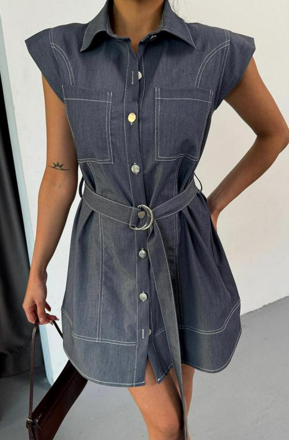 GÖMLEK ELBİSE KOLSUZ TENCEL KUMAŞ - Mavi