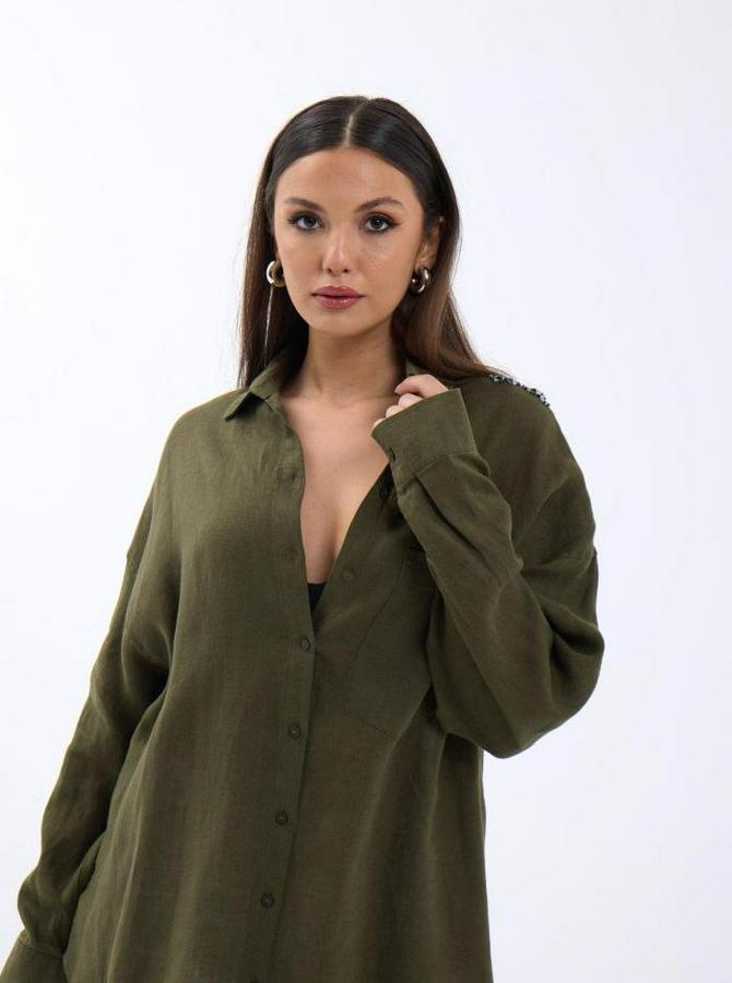 Sırtı Çapraz İpli Boncuk Detaylı Elbise 2902-08