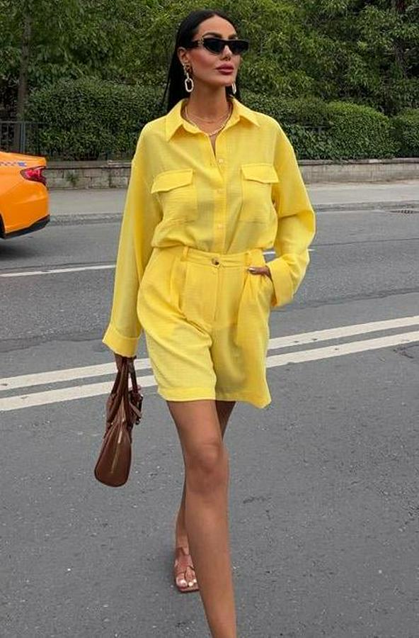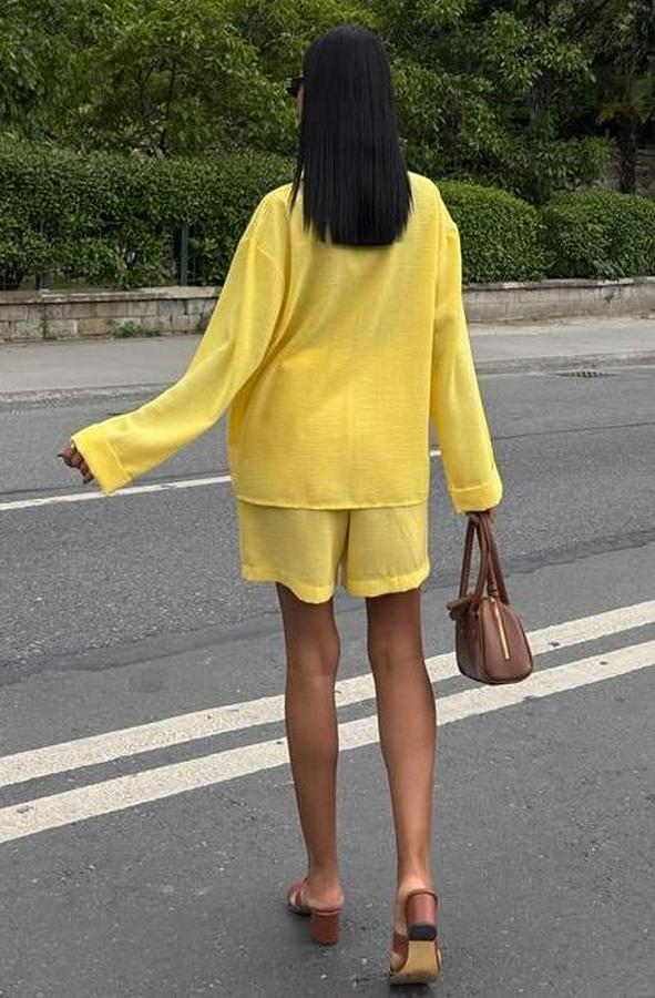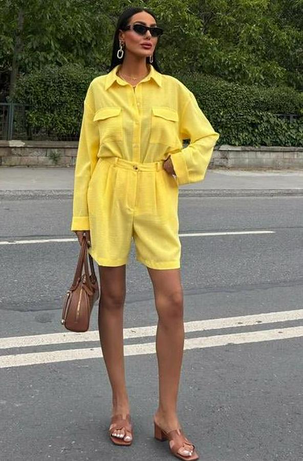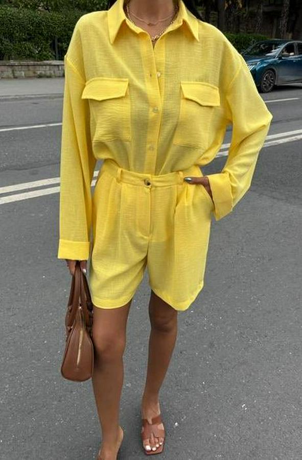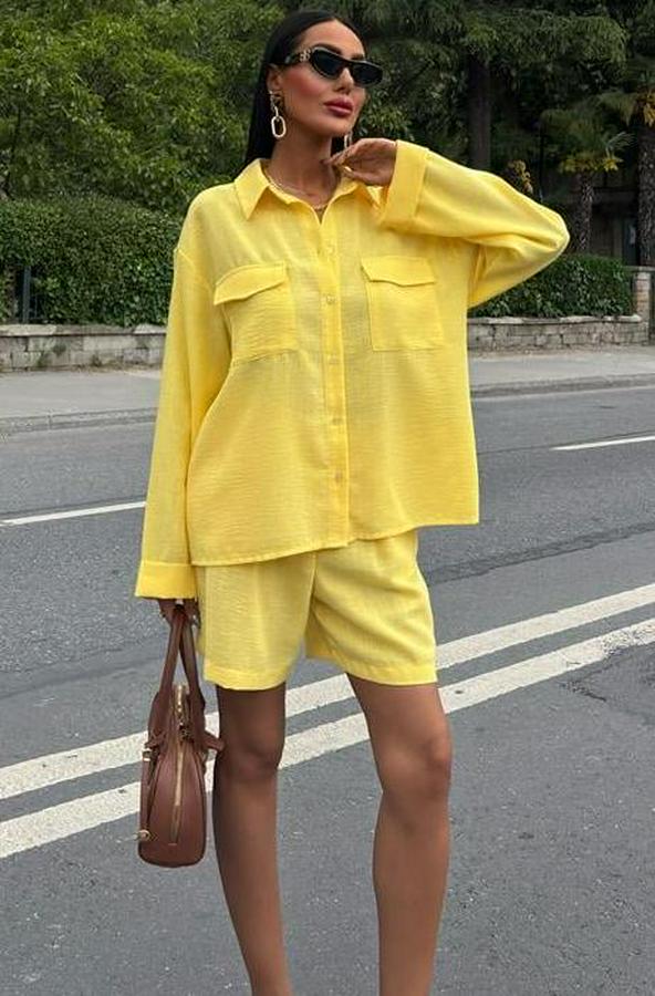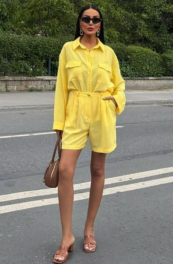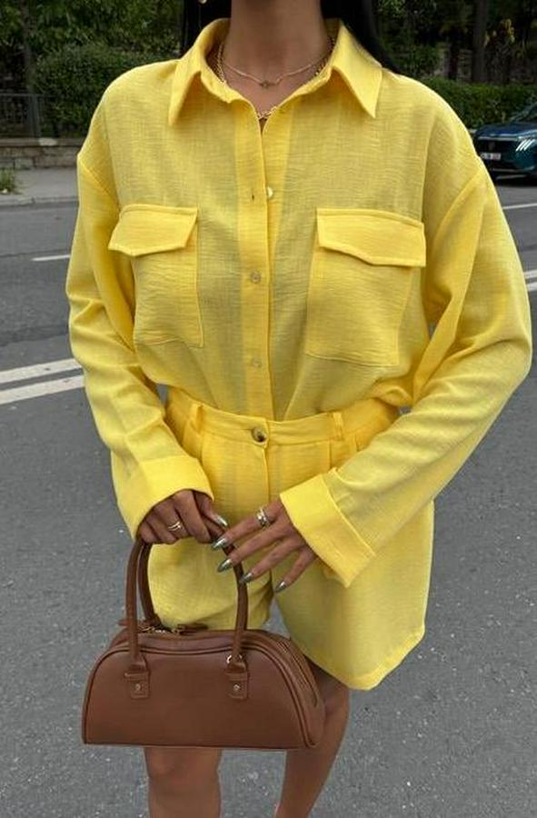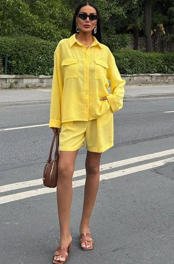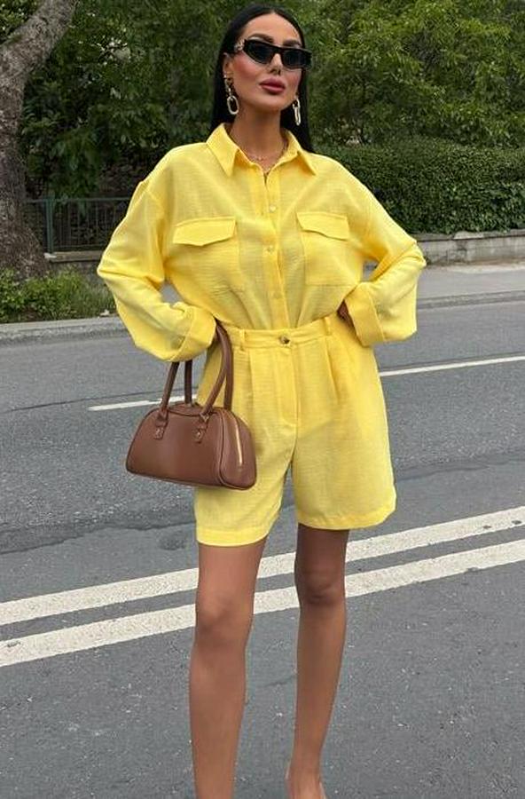AnasayfaTüm ÜrünlerElbiseGömlek Ve Şort Flamlı Keten Takım
