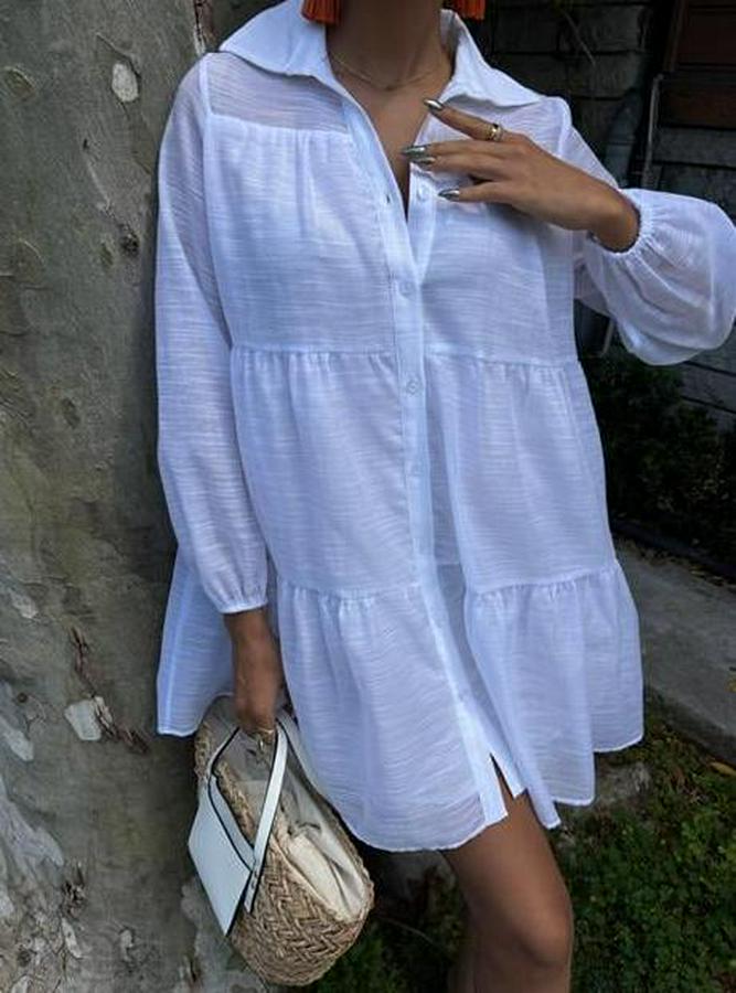 AnasayfaTüm ÜrünlerElbiseGömlek Yaka Pileli Elbise 2898