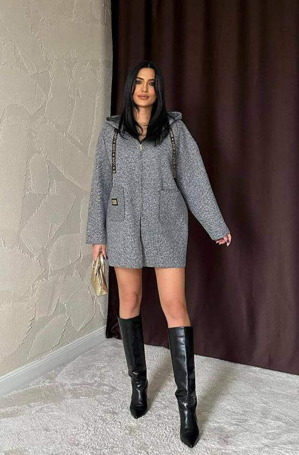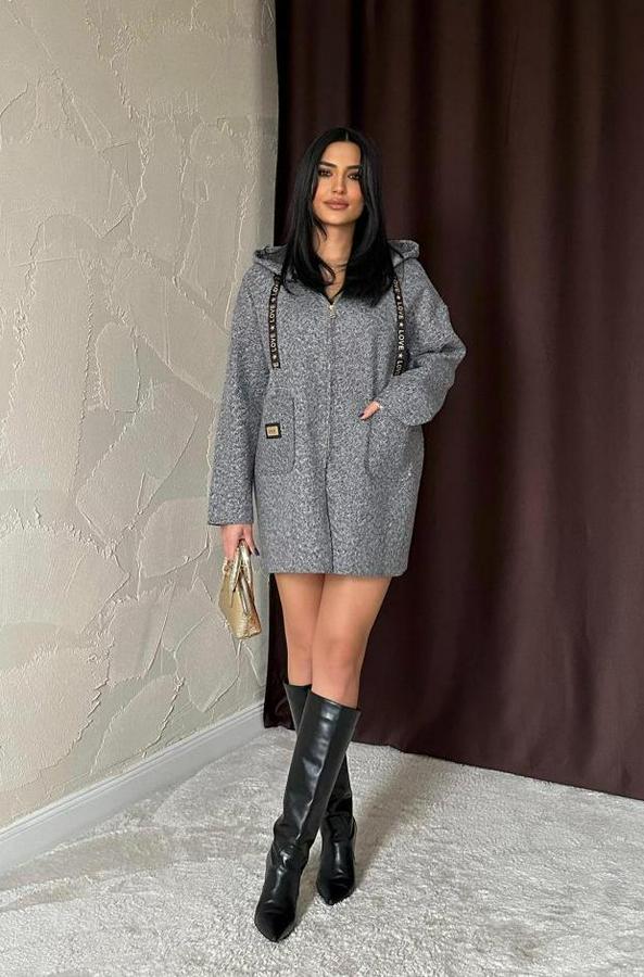 AnasayfaTüm ÜrünlerElbiseGri Armalı Kapşonlu Peluş Ceket