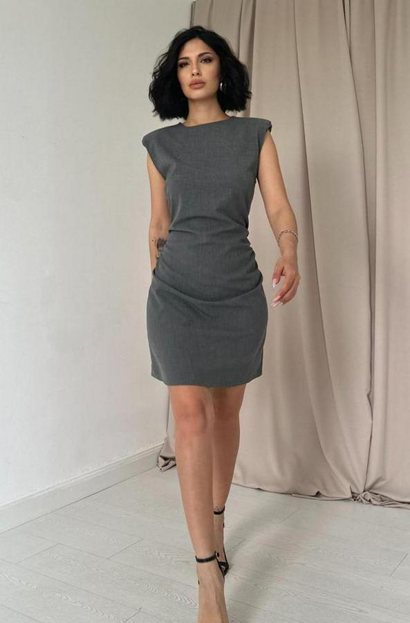 Gri Yanı Büzgülü Sıfır Kol Elbise