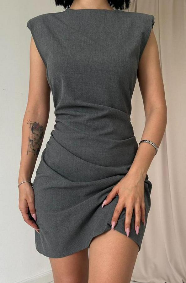 AnasayfaTüm ÜrünlerElbiseGri Yanı Büzgülü Sıfır Kol Elbise