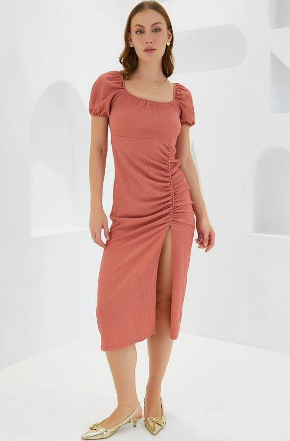 Gül Kurusu Yırtmaçlı Yazlık Örme Elbise 2396