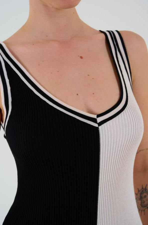 İki Renki Kolsuz Elbise - Siyah-Krem