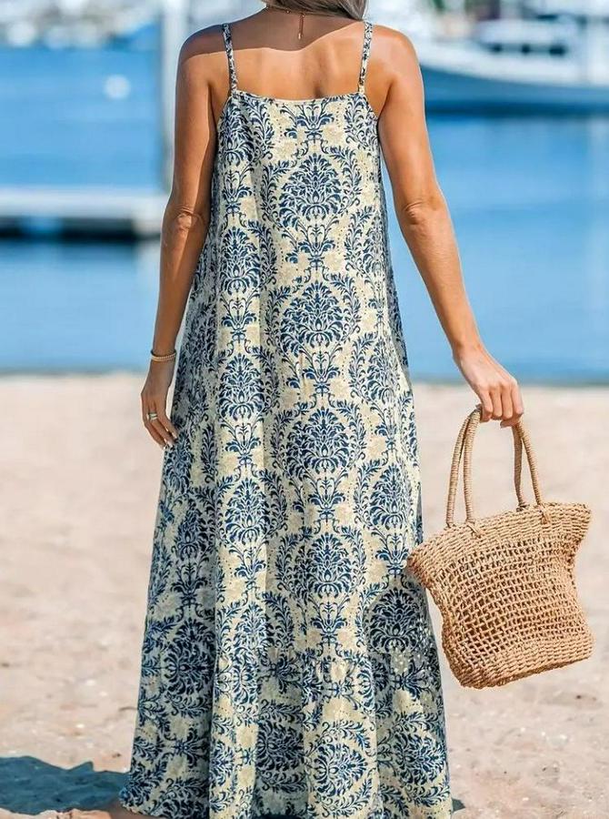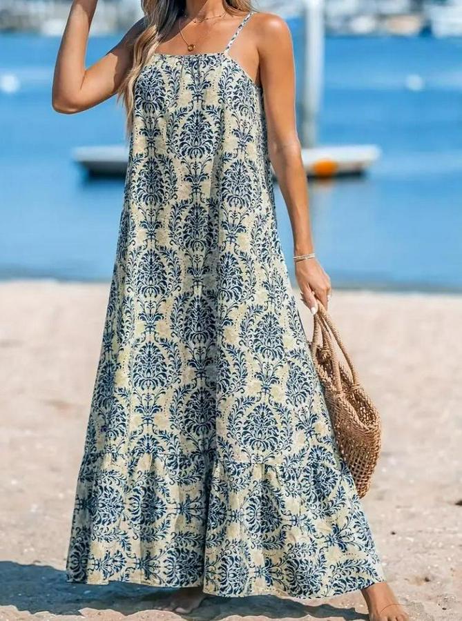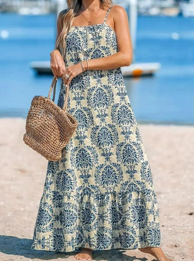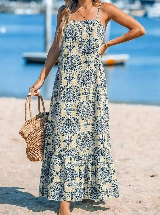 Kadın Ip Askılı Desenli Fırfırlı Süprem Elbise