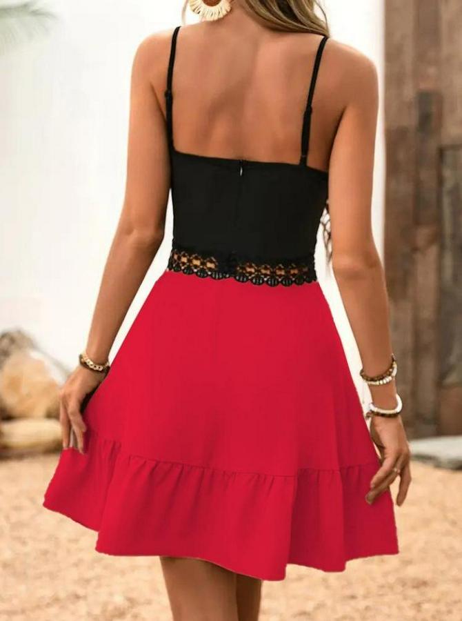 Kadın Ip Askılı Kruvaze Yaka Bel Dantel Ithal Krep Elbise
