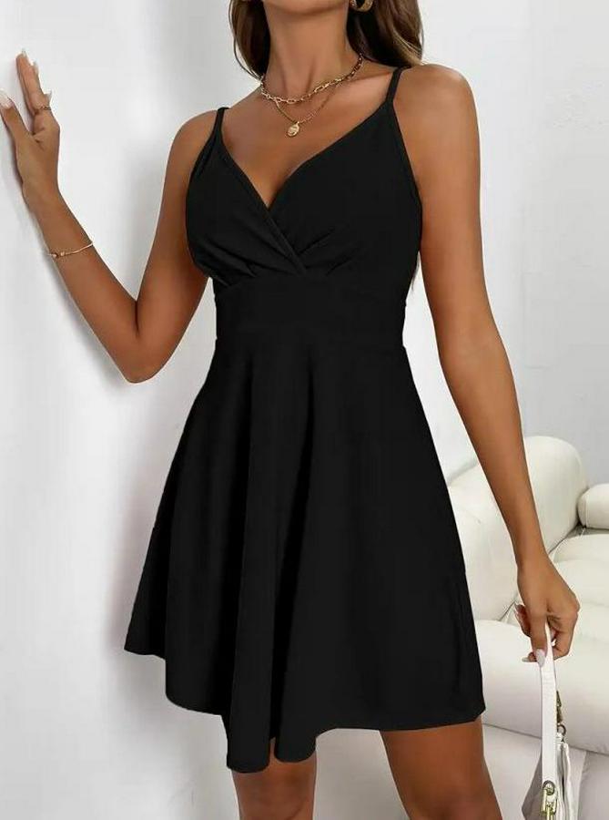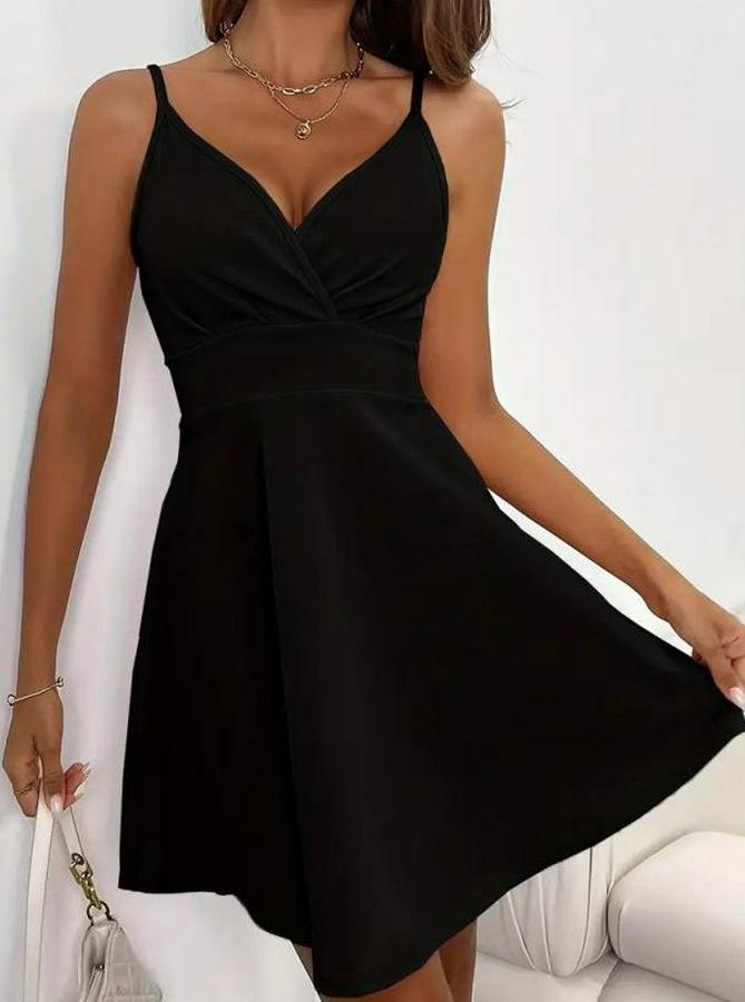 Kadın Ip Askılı Kruvaze Yakalı Kısa ıthal Krep Elbise