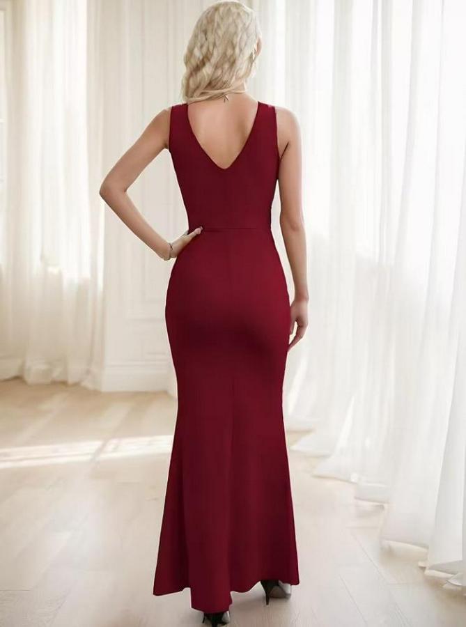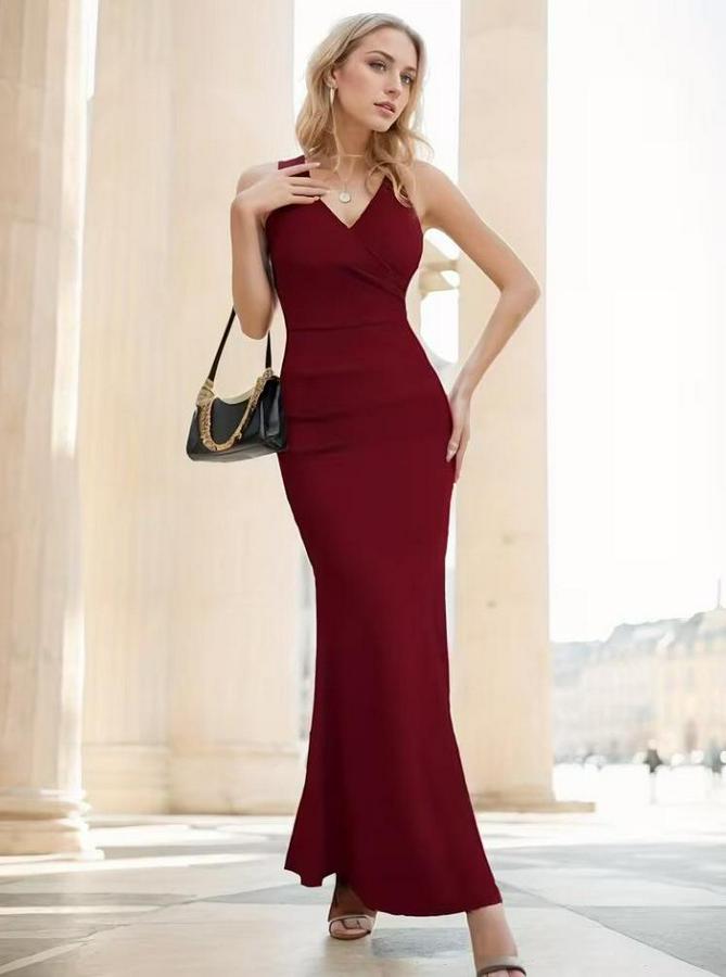 AnasayfaTüm ÜrünlerElbiseIp Askılı Kruvaze Yakalı Yırtmaçlı Uzun Ithal Krep Elbise