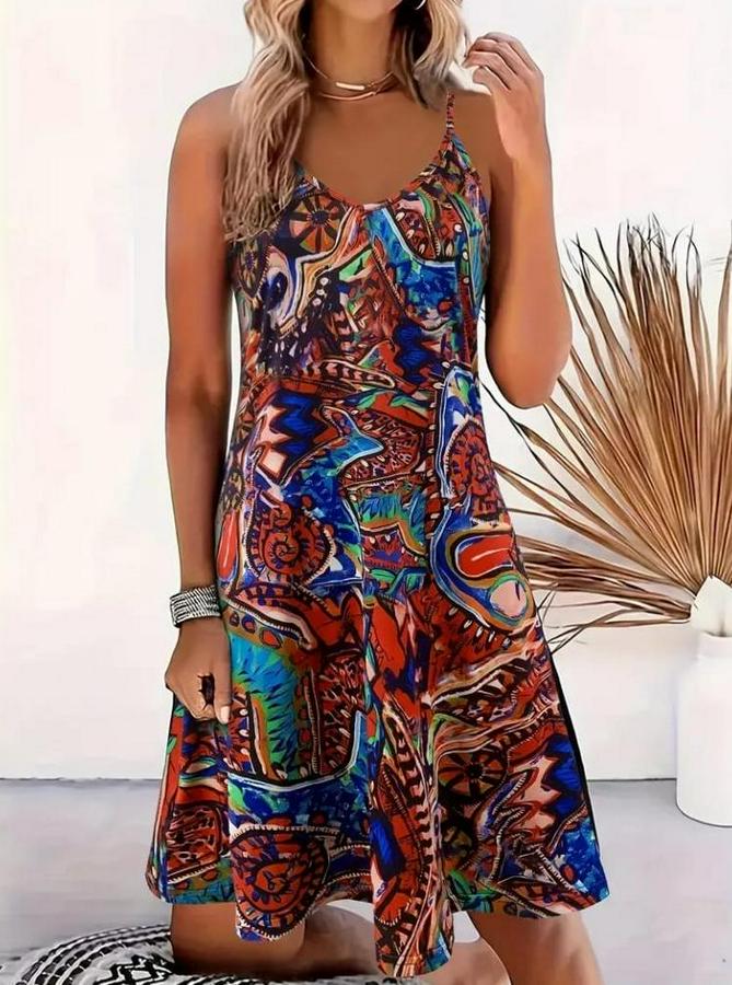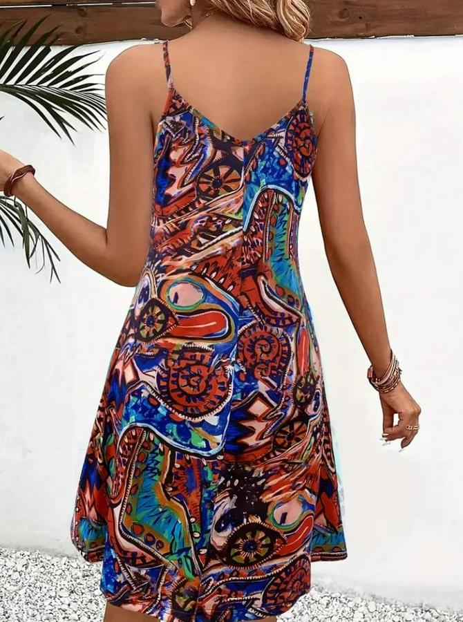 Kadın Ip Askılı V Yakalı Desenli Kısa Süprem Elbise