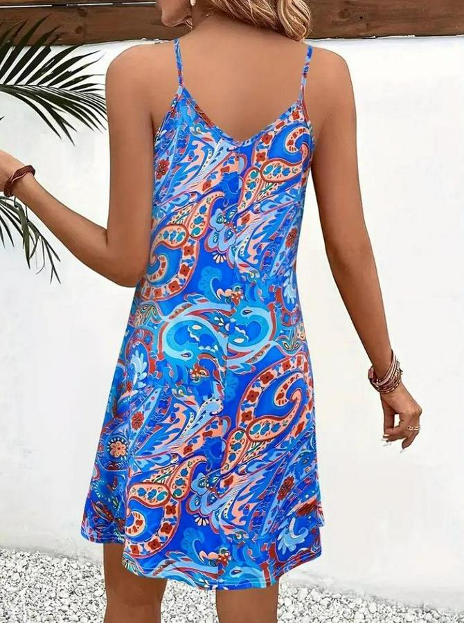 Kadın Ip Askılı V Yakalı Desenli Kısa Süprem Mini Elbise