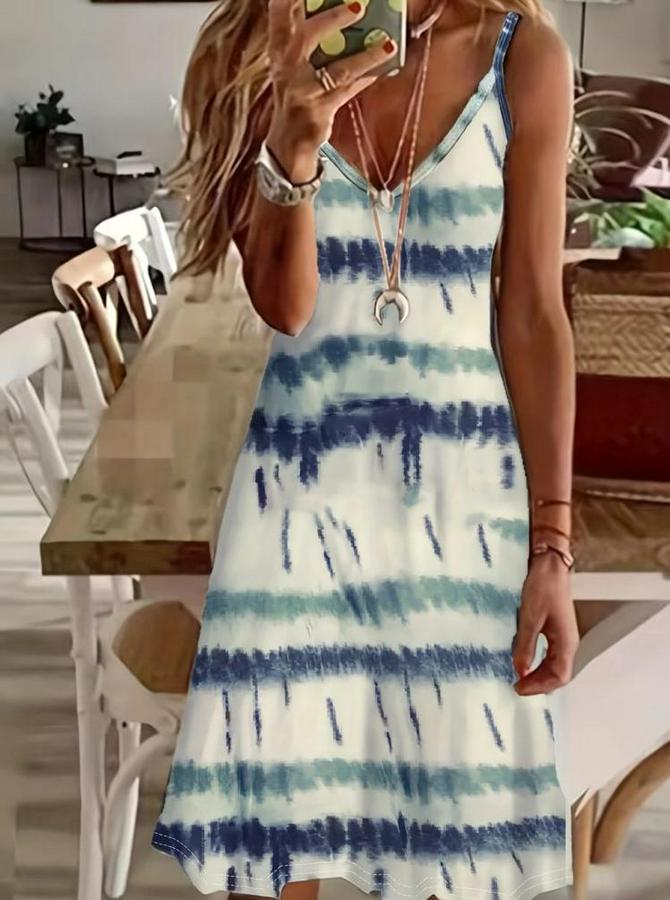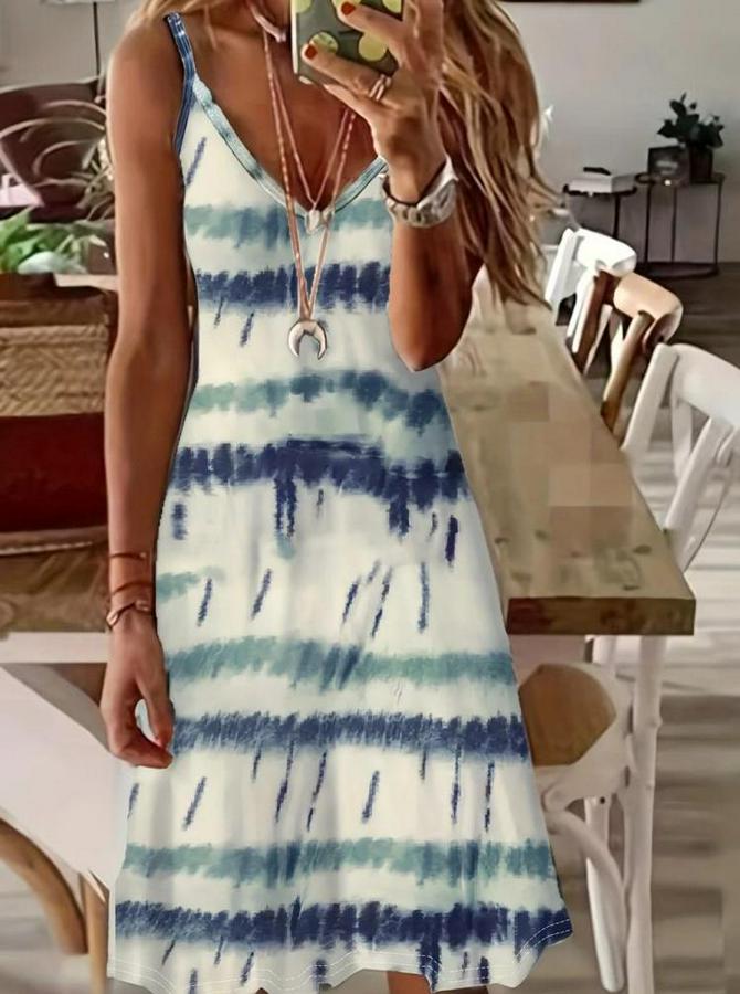 Ip Askılı V Yakalı Karışık Renkli Süprem Elbise