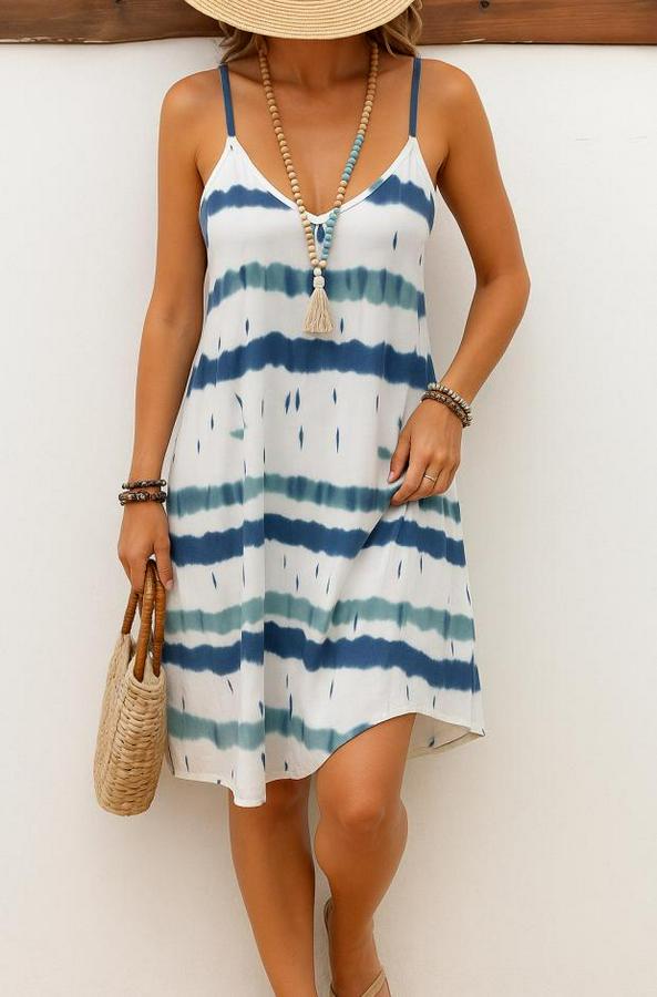 Ip Askılı V Yakalı Karışık Renkli Süprem Elbise