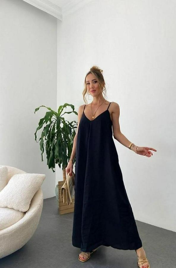 Kadın Ip Askılı V Yakalı Uzun Aerobin Elbise