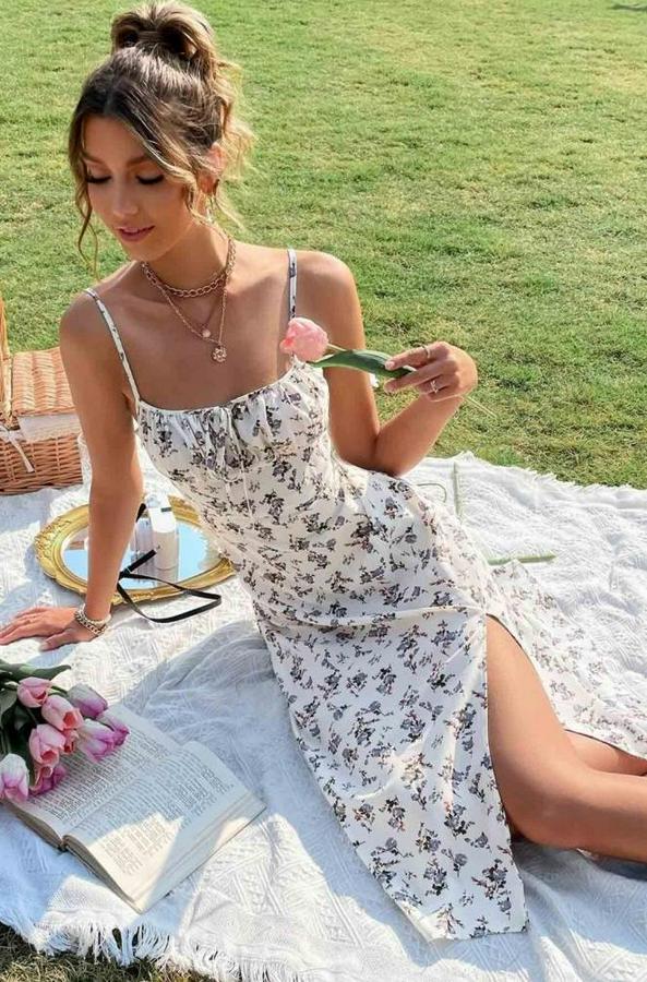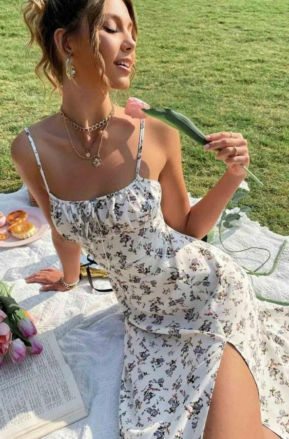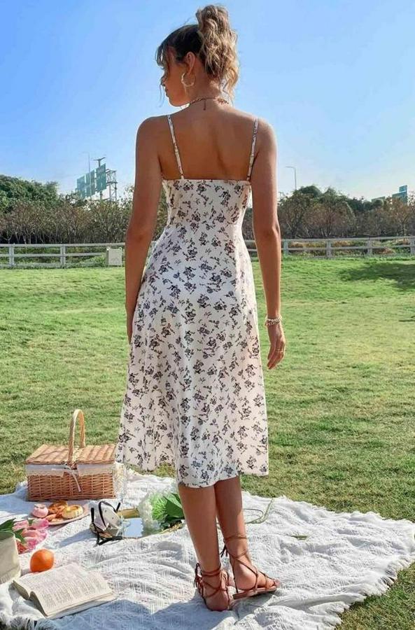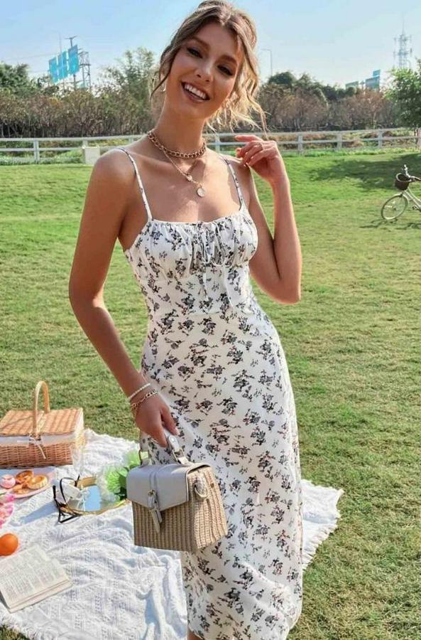 Kadın Ip Askılı Yakadan Bağcıklı Desenli Süprem Elbise
