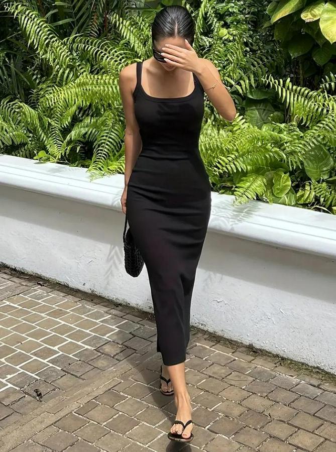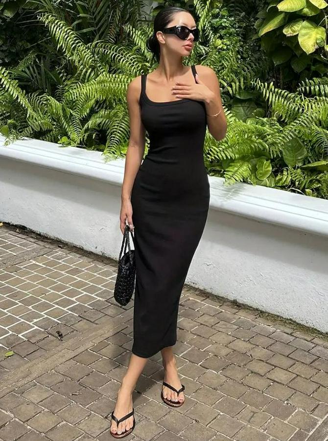 Kadın Ip Askılı Yuvarlak Yakalı Yırtmaçlı Midi Kaşkorse Elbise