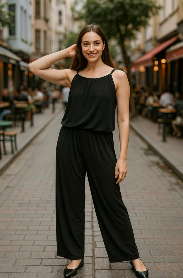 Kadın Rahat Kesim Askılı Bol Paça Sandy Kumaş Fırsat Ürün Tulum&Elbise